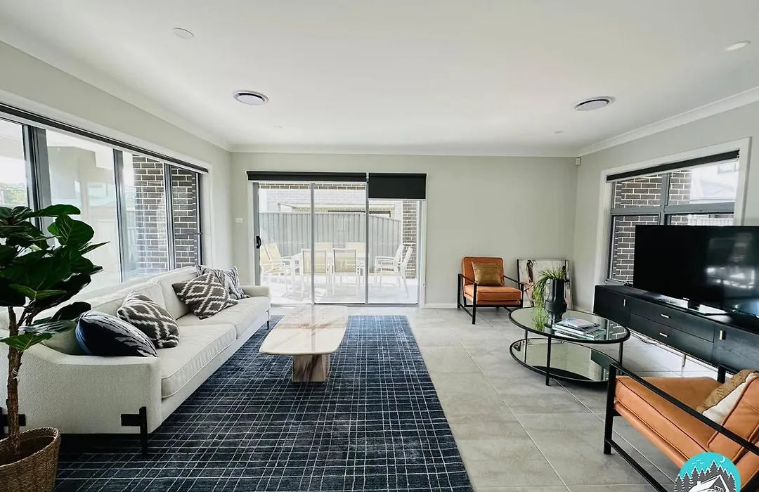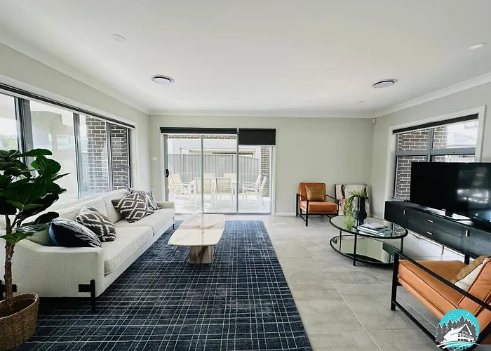 Die 3-Zimmer-Villa Aircabin - Denham Court - Modern - 4 Beds House verfügt über eine Küchenzeile mit einer Mikrowelle, einem Wasserkocher und Küchenutensilien. Die Entfernung zum Flughafen Sydney beträgt etwa 40 km.